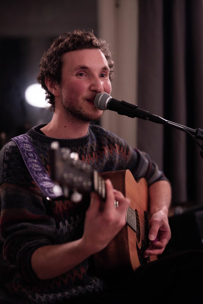 Und so war die erste Hälfte seines Konzerts geprägt von eigenen Songs, die meist von vergangen Lieben, Großstadtromantik oder den Kleinigkeiten des Lebens handeln. die berühren, verführen und einen zum Schmunzeln bringen. Mit seinem Talent für komödiantische Erzählungen und mit seinem unwiderstehlichen Charme weiß er zusätzlich seine Zuhörer:innen zu begeistern und für sich einzunehmen.