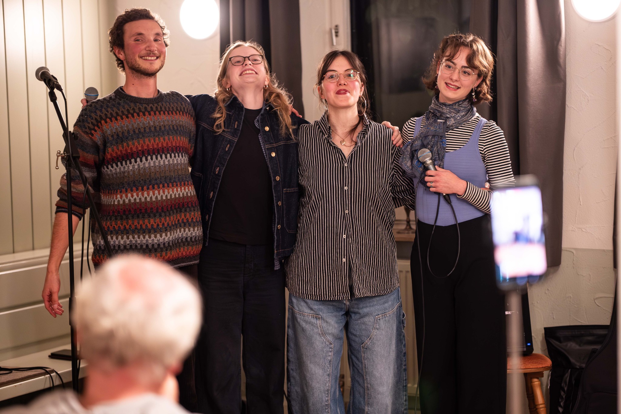 Die zweite Hälfte des Konzerts bestritt Vincent Water dann nicht mehr allein. Vielmehr ließ er sich von Milena, Lilly und Lola, drei Sängerinnen, die er von der Musikhochschule Mannheim kennt, in unterschiedlicher Zusammensetzung begleiten. Dieser Teil des Abends überzeugte durch stimmliche Varianz und einen unverwechselbaren A-Capella-Charme.