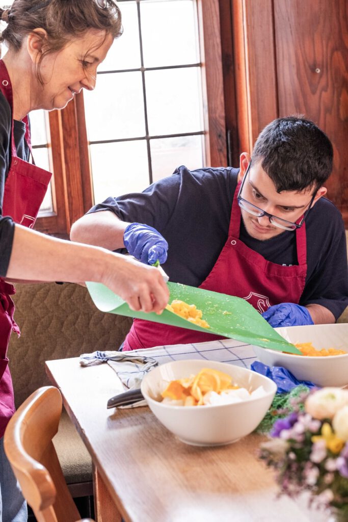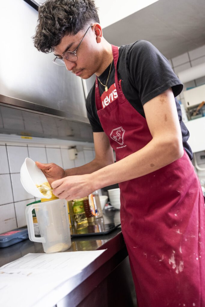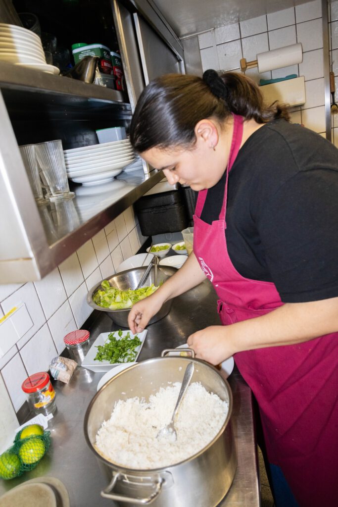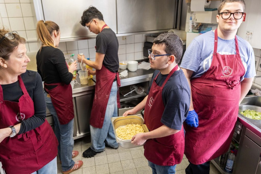 Jeden Donnerstag Mittag sind sechs Schüler:innen der Bodelschwinghschule für Kochen und Bedienung der Gäste zuständig.