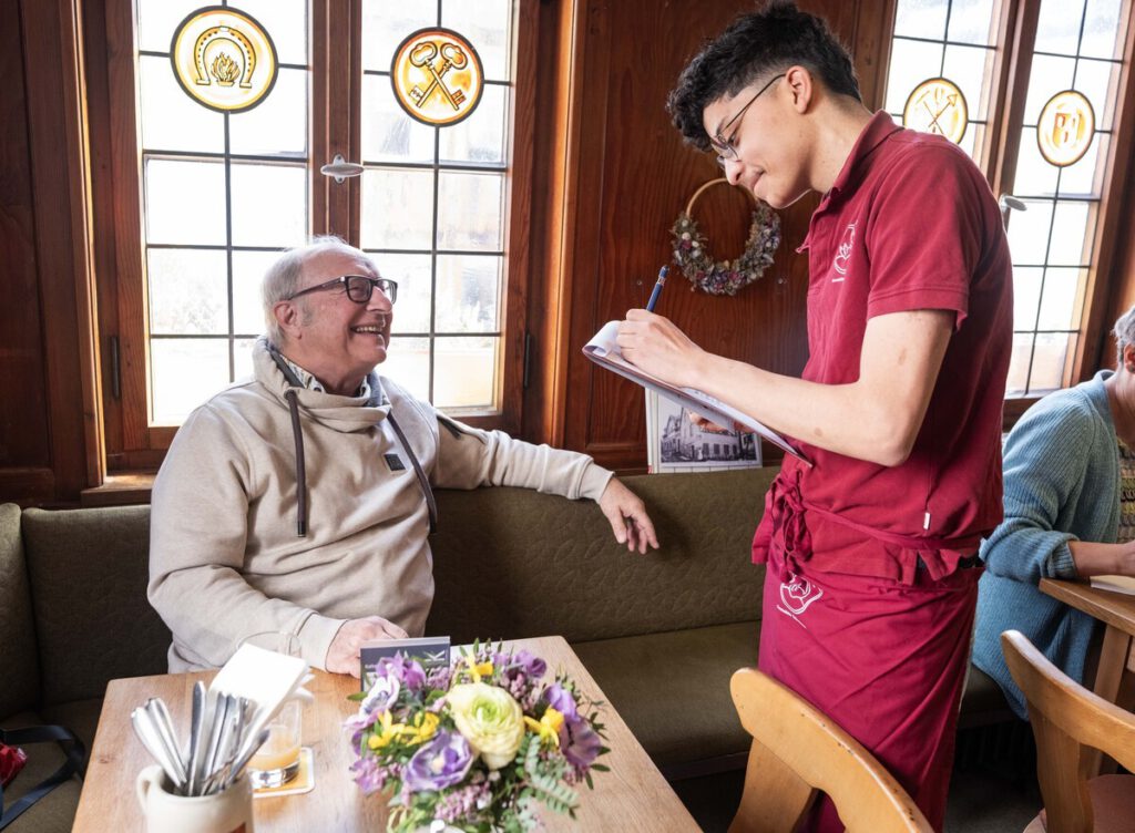 Eine Win-Win Situation für alle, die Schüler:innen genießen den Umgang mit den Gästen, und die Gäste die herzliche Atmosphäre.
