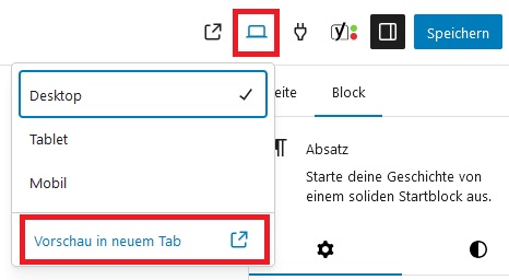 Nutze vor der Veröffentlichung die Vorschau-Funktion, um das Design sowohl auf Desktop- als auch auf Mobilgeräten zu testen.