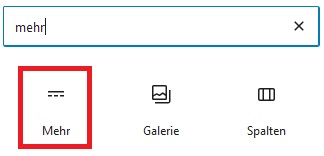 Wichtig: Teile den Text im Editor unbedingt mit dem „Mehr“ Element.