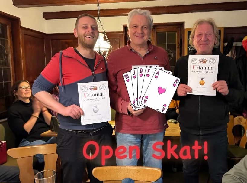 Der Termin für das 2. Schwanen Open Skat-Turnier steht bereits fest: Samstag, 21. November 2026. Denn alle fünf Teilnehmerinnen und 19 Teilnehmer waren sich einig: Es war klasse, toll, super. Fortsetzung folgt.