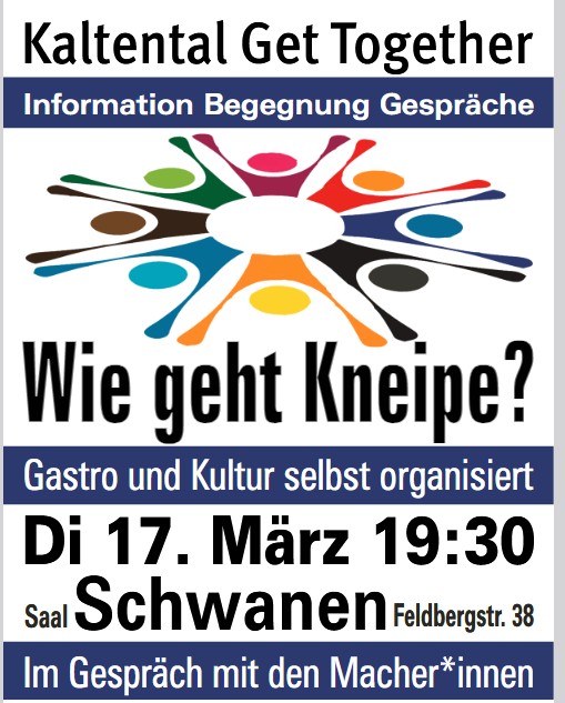 Die Zukunftswerkstatt ist mit der Reihe „Kaltental Get Together“ zu Gast im Schwanen – und das Thema ist der Schwanen: „Wie geht Kneipe?“