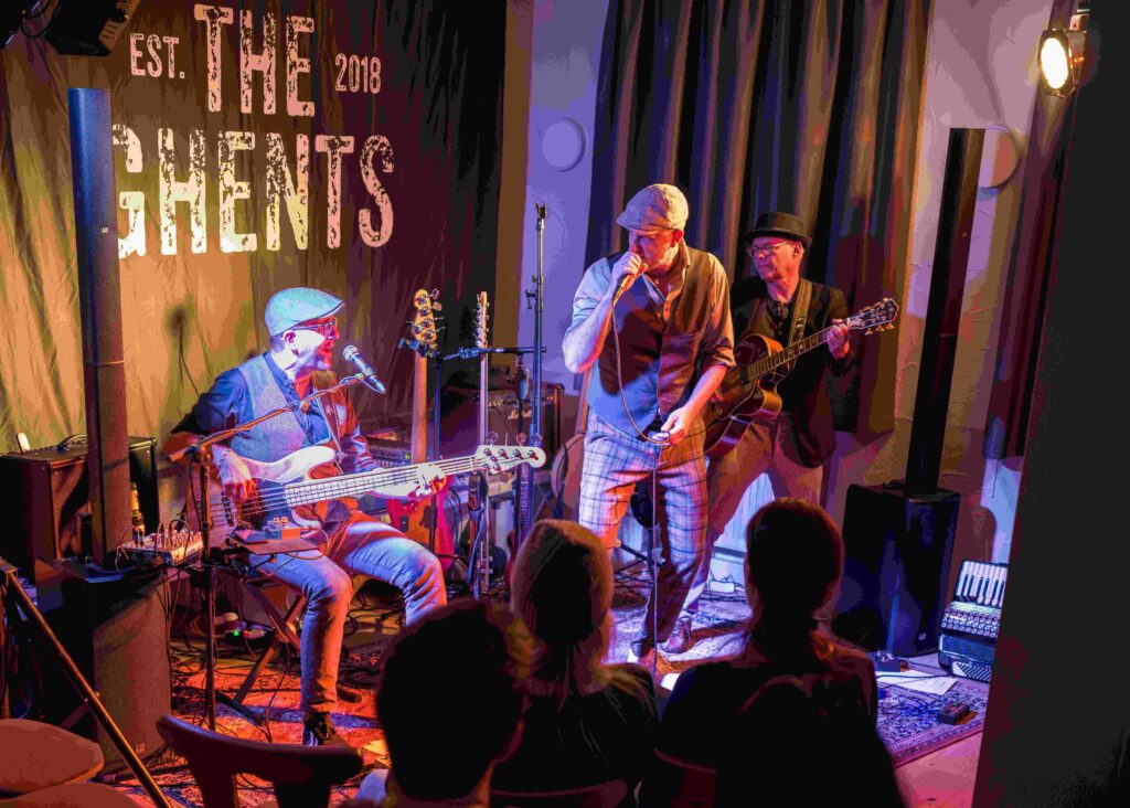The Ghents sind Dr. B.T. an Bass, Beats und Backing Vocals, Dr. Georges an der Gitarre und Slim Rick Paradise mit Gesang, Ukulele, Akkordeon und Bluesharp. The Ghents heißen übrigens Die Genter, weil die familiären Wurzeln von Sänger Sim Rick dorthin zurückreichen und die drei Musiker sich mit Freunden und Freuden alljährlich beim Genter Musikfestival ihrer Sehnsucht nach belgischem Bier und Fritten hingeben. Und natürlich der vielfältigen Musik auf den zahlreichen Bühnen in der belgischen Stadt.