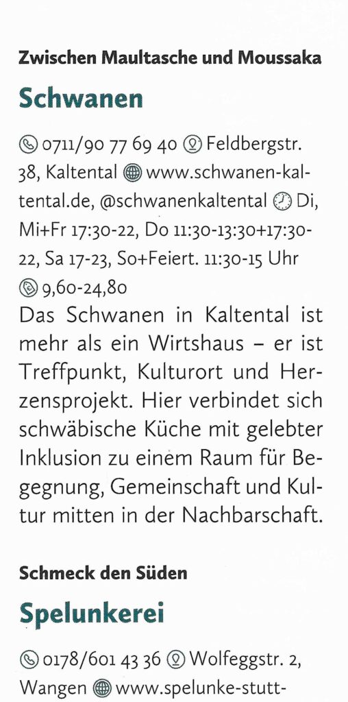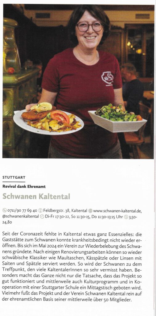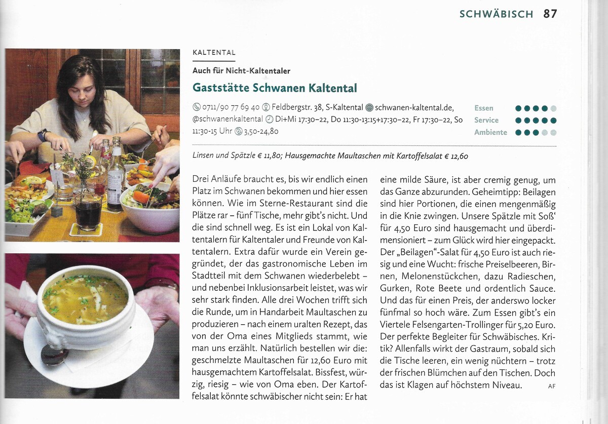 Gleich dreimal ist der Schwanen im Gastroguide „Stuttgart geht aus 2026“ vertreten…